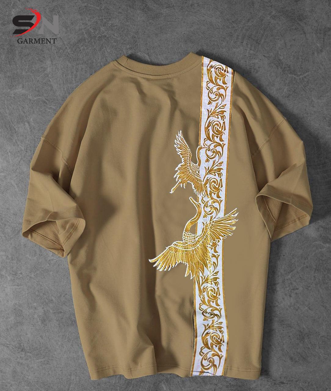 Beige Colour Peacock Printed Drop Shoulder T-Shirt For Mens & Boys (SN117)