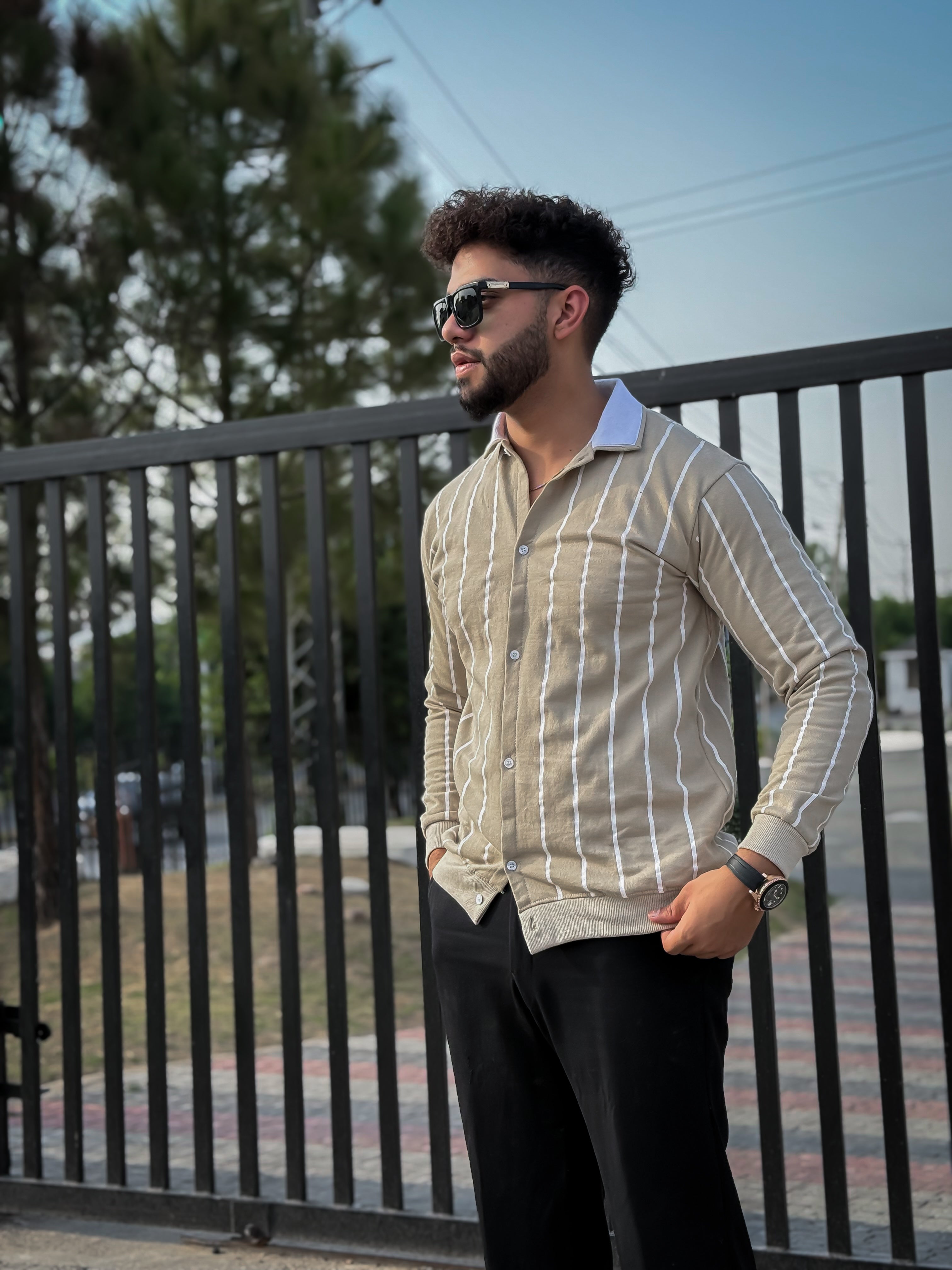 Button Down Stripe Printed Shirt Style Jacket For Mens & Boys